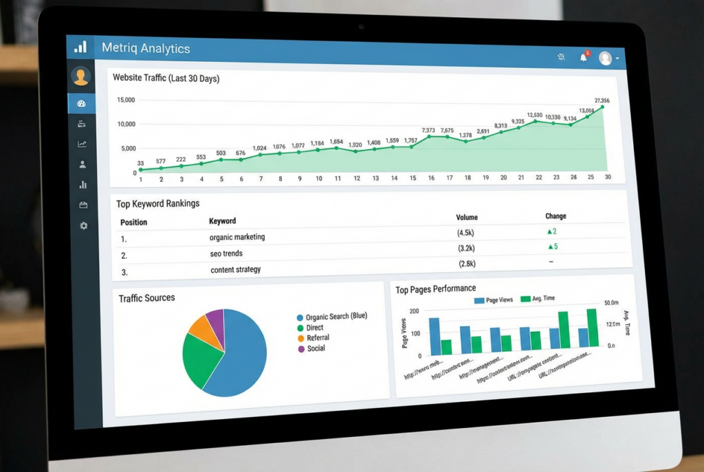 Tracks everything that happens on your website: how many visitors, where they come from, which pages they read, how long they stay, and which pages lead to conversions.